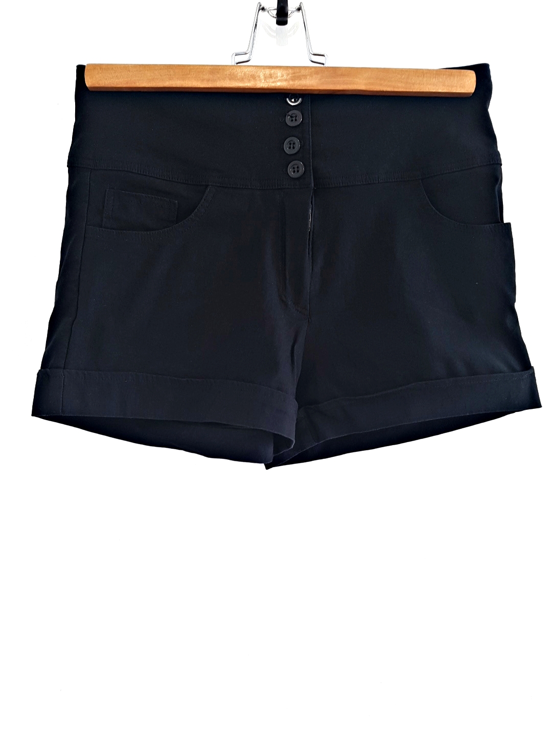 Mini-short à revers 2 poches latérales braguette zippée surmontée de boutons.