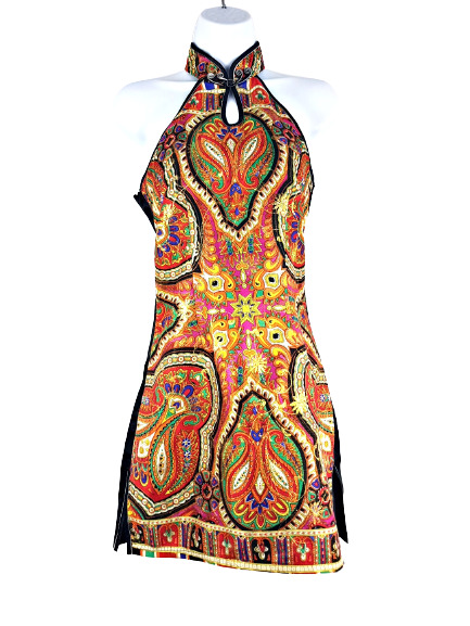 Robe dos nu fendue sur les côtés col mao.