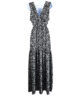 Robe longue fluide ajustée à motif floral col en V croisé.